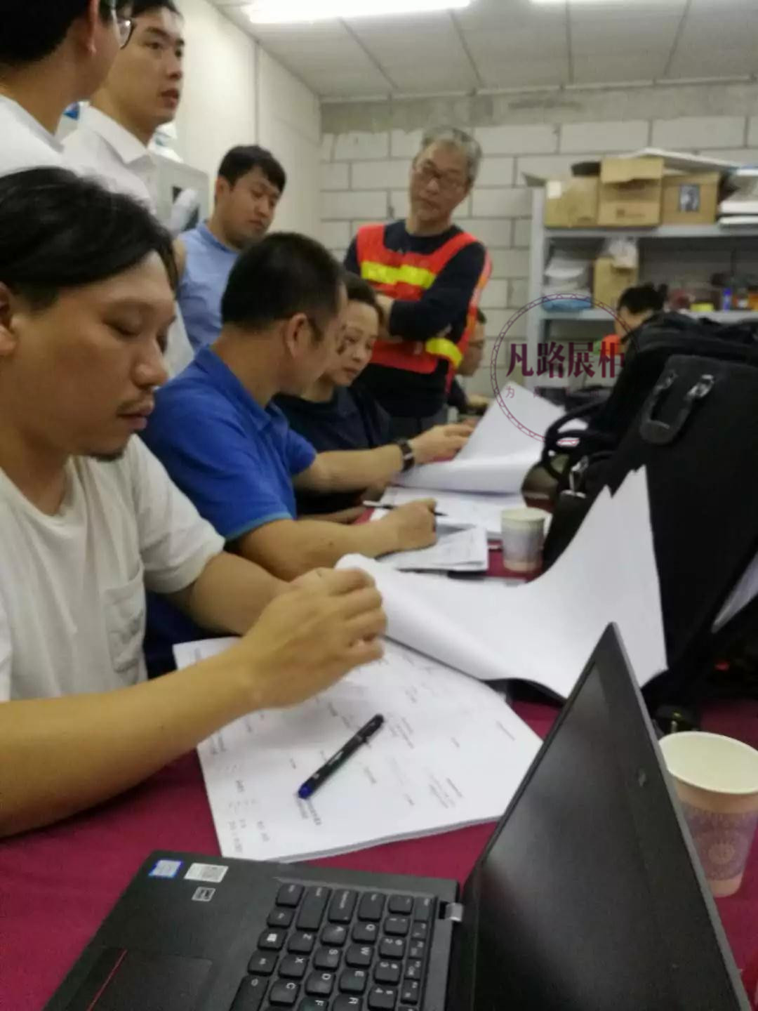 各位領(lǐng)導(dǎo)在車間討論樣品細(xì)節(jié)