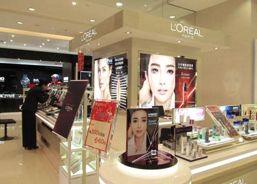 不過為了襯 托柜臺的檔次可以再化妝品柜臺以上的部分做一圈環境,搭配上燈光,馬上顯得店面有一定檔次了。