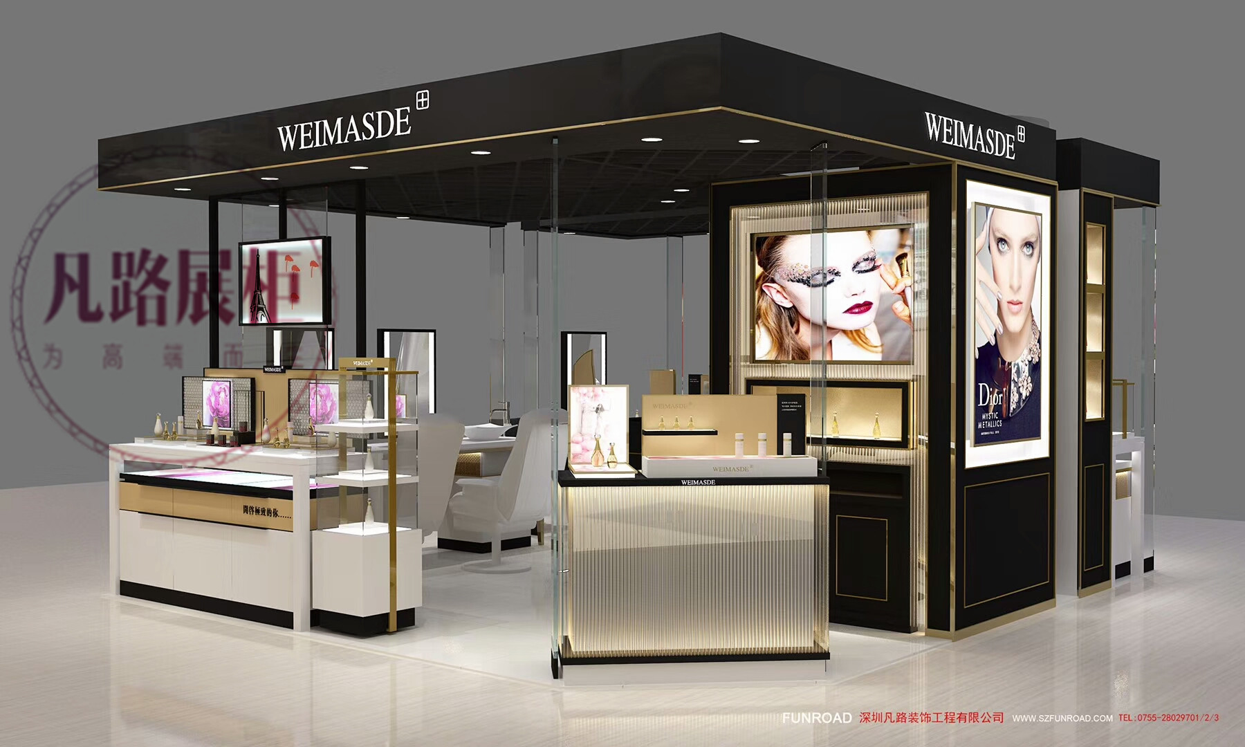 深圳化妝品展柜定制廠家凡路裝飾專業專注中高端化妝品展柜,化妝品展示柜,化妝品柜臺設計制作。為企業提供化妝品展柜設計制作方案,訂做/定做化妝品展柜服務,找化妝品展柜廠家、咨詢化妝品柜臺價格,找化妝品店展柜圖片就到凡路化妝品展柜公司官網。