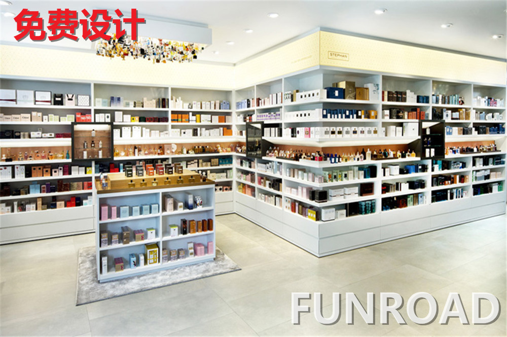 【品名】:商場店面木質烤漆化妝品展示柜臺設計陳列效果圖-可來圖訂制
