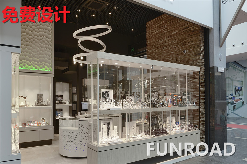 白色木制烤漆帶玻璃手表展示柜臺(tái)設(shè)計(jì)制作案例