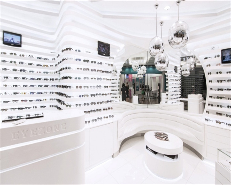 純白現代流行眼鏡專賣店眼鏡展示柜臺效果圖