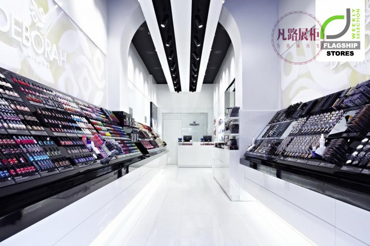 【化妝品展柜適用場所】:展柜適合大型購物商場、專賣店、超市、賣場、展廳、會展,加盟店、品牌連鎖店。