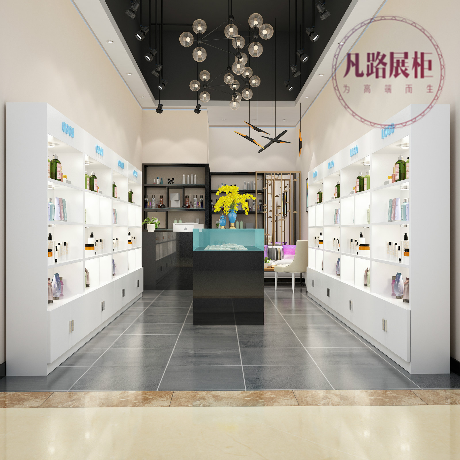 【化妝品展柜適用場所】:展柜適合大型購物商場、專賣店、超市、賣場、展廳、會展,加盟店、品牌連鎖店。
